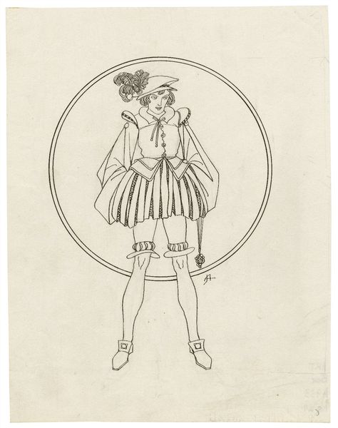 Curator: Welcome. Today, we are considering a piece by John Austen simply called, “Hamlet,” executed in ink on paper. Editor: Immediately, the drawing strikes me as embodying a powerful aesthetic decadence. The intricate linear detail and the subject's languid posture exude fin-de-siècle melancholy. Curator: Indeed. Austen's art nouveau style resonates with the artistic trends of his time. The work invites us to consider how turn-of-the-century artistic movements depicted and sometimes subverted conventional norms. Editor: Right, the gender dynamics at play here are fascinating. I'm curious about the decision to depict a rather androgynous Hamlet—drawing attention to the fluidity of identity and questioning traditional masculine representations in the classic tragedy. Curator: It also brings up conversations of sexuality in Austen's personal life and that of artists in that era more broadly, as coded depictions of same-sex desire are evident elsewhere in his art and in the era's art more broadly. Editor: Precisely. Austen utilizes these symbolic gestures within the context of early 20th-century social attitudes. This choice invites us to question societal expectations imposed upon Hamlet as a character. What power structures and gender performances is he made to embody? Curator: Moreover, thinking about this as an interpretation of Shakespeare is fascinating in itself. Consider the socio-political factors informing Austen's creative liberties. Editor: This challenges audiences to grapple with uncomfortable truths embedded within classic narratives; this makes the viewer confront biases and social hierarchies prevalent then and reflected even today. The viewer is being encouraged to consider a contemporary social issue and see how Hamlet both fits and diverges from a historical narrative. Curator: Thank you for helping us unpack these challenging concepts. I believe Austen's piece offers us much to consider regarding the relationship between art, social activism, and the reinterpretation of cultural symbols. Editor: Absolutely, exploring the fusion between historical context and critical thought allows the artwork to catalyze meaningful dialogues on our modern culture, societal progress, and representation itself.