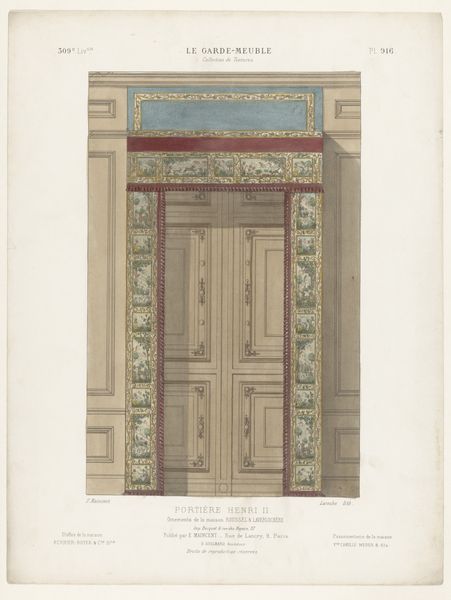 Léon Laroche's print presents a window adorned with curtains, evoking a sense of Renaissance grandeur. The design above the curtains features stylized floral patterns and a central emblem of a stylized rosette. This rosette mirrors the classical acanthus leaf, a motif deeply rooted in antiquity, symbolizing rebirth and immortality. The acanthus leaf, initially gracing Greek temples, found its way into Romanesque and Renaissance art, evolving yet retaining its essence. Consider its recurrence: from the capitals of Corinthian columns to embellishments in medieval manuscripts. This journey reveals a collective memory at play, where symbols transform yet resonate across epochs. These motifs touch upon our subconscious desires for beauty and permanence. They offer a sense of continuity amidst the chaos of existence, a visual echo of past glories resonating within our present. The rosette reminds us that symbols are never truly lost but instead resurface, reborn in new contexts, each time carrying layers of accumulated meaning.
