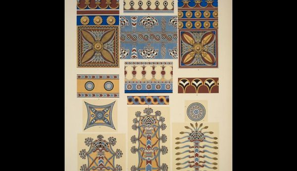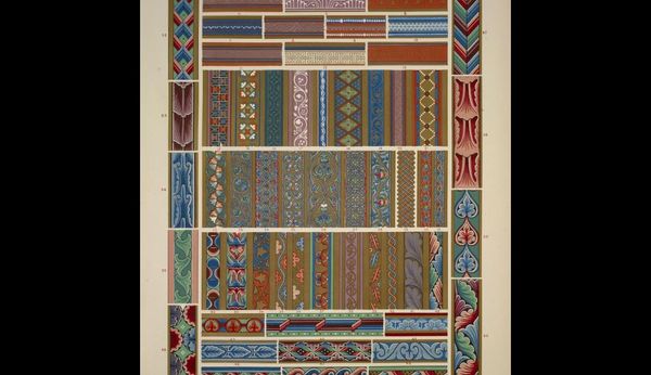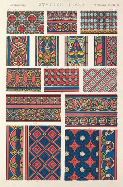 Editor: So, this is "Middle Ages No.2a" by Owen Jones, created around 1856. It's a print and drawing displaying several decorative patterns. I’m struck by how the image blends high art and what we might consider craft – what can you tell me about that tension in this work? Curator: What is fascinating here is to consider how this work actively engages with the Industrial Revolution, particularly the Victorian drive for accessible design. Jones isn’t just replicating medieval patterns; he's involved in a process of *producing* them for a wider market. Consider the materiality: printmaking allowed for mass production, bringing design to a broader consumer base. How does that shift the value of design? Editor: It seems like it democratizes art, making design accessible to more people, but perhaps at the expense of the unique, handmade quality? Curator: Precisely. We must question the implications of reproducibility. This isn't simply about aesthetics; it's about labor, production, and consumption. Look at these geometric patterns: they speak to standardization, efficiency, and perhaps even a utopian vision of design for all. Do you think that vision succeeds here? Editor: I see what you mean, but isn’t it ironic that these mass-produced designs are referencing a period known for its craftsmanship and handiwork? Curator: It is! Jones is essentially commodifying the aesthetics of a pre-industrial era, but through industrial means. What social commentary is that, and who gets left out of the narrative being created here? That tension – between hand and machine, individual and mass – is the crucial element. Editor: So, by examining the materials and means of production, we uncover a complex relationship between art, industry, and consumption. I appreciate that viewpoint! Curator: Indeed. Seeing the artwork through the lens of materials helps us understand how cultural values are embedded in these works.
