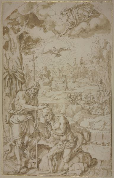 This pen and brown ink drawing titled, "Annunciation," is by an anonymous artist. It depicts the biblical scene where the angel Gabriel informs Mary that she will conceive and bear a son, Jesus. The image's meaning is created through visual codes, cultural references, and historical associations. Likely created in Europe, this drawing reflects the heavy influence of the Catholic church. The church has historically played a major role in shaping artistic production, dictating subject matter, style, and even the materials used. This particular image reinforces the church's teachings and reaffirms its authority. The drawing is self-consciously conservative. As a historian, further understanding requires research into the patronage system of the time, the role of religious institutions, and the social status of artists. The meaning of art is contingent on its social and institutional context.