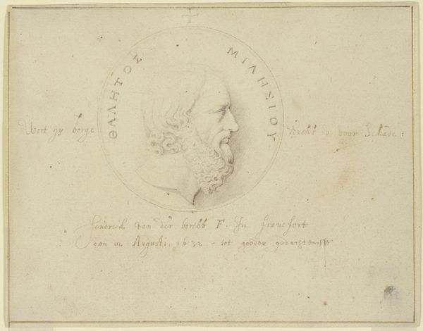 Curator: Here we have Jean Bernard’s “Zelfportret,” or self-portrait, likely dating between 1785 and 1833. It's a pencil drawing on what looks like toned paper, currently held in the collection of the Rijksmuseum. Editor: Ah, yes, this drawing...it feels intimate, like stumbling upon someone’s personal musings. There’s a certain melancholic air about it, almost fragile. Curator: I think that feeling of intimacy is really important, and speaks to how portraiture at the time was being used to convey interiority and identity. Romanticism certainly valued the individual experience, and we can see this play out in portraiture through posture, expression and physiognomy. Bernard situates himself in the sketch as a learned intellectual. Editor: Absolutely. It is a sketch; there is something unfinished. But the artist did choose to present this specific, particular view of himself for scrutiny. I imagine that what might appear casual reveals a deeper deliberation, the cultivation of a certain persona in the act of self-observation. Do you feel it speaks to themes of artistic identity, that persistent pull between what you project and what you truly feel inside? Curator: It absolutely speaks to artistic identity. While the piece is unfinished, the attention to detail in the hair and beard suggests the subject understood the power of Romantic aesthetics. And by emphasizing those features, we begin to unpack Romantic-era concepts of the "self" that privileged inward, reflective sentiment as authentic and revealing. In its unfinished state, it offers an uncanny glimpse into the performativity of selfhood. Editor: Yes! The eyes looking off to the side, into some internal abyss, add to that sentiment. And perhaps we as the viewers are catching the artist at a particular moment of contemplation. Well, in considering his artistic aims, and broader societal context, I think that I find that it draws me closer. Curator: I agree, the intersection of the artist, the historical period, and its presentation of the artist is incredibly captivating. This small sketch gives us insight into how people viewed themselves, but perhaps more intriguingly, it reflects the aspirations of the era.