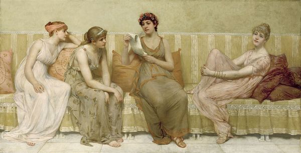 John William Godward created this scene with oil on canvas, and at first glance it looks like a straightforward scene of classical beauty. But let’s consider the material reality here. Godward has rendered marble with uncanny accuracy, a skill honed through careful observation and painstaking brushwork. The stone’s cool, smooth surface is almost palpable, its weight and presence anchoring the scene. And the garments draped on the figures? These are not mere fabrics, but carefully chosen textiles, likely linen or wool, each with its own texture and drape. The tiger skin on the floor speaks of exotic trade routes, of far-flung corners of the British Empire. Think about the labor involved in creating such a painting. The preparation of the canvas, the grinding of pigments, the meticulous application of paint, layer upon layer. Godward’s art was made possible by a world of work, from the quarrymen who extracted the marble to the weavers who spun the cloth. By attending to the material facts of this painting, we can appreciate it not just as a beautiful image, but as a product of its time, reflecting the social and economic realities of late 19th-century Britain.