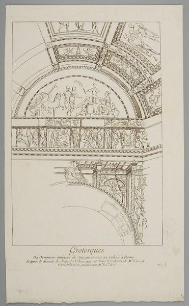 Anne Claude Philippe Caylus' print captures a detail of stucco reliefs from the Colosseum in Rome. Note the grotesque style: a playful yet unsettling mix of human, animal, and vegetal forms. These motifs, deeply rooted in ancient Roman art, experienced a revival during the Renaissance. Artists rediscovered them in Nero's Domus Aurea, influencing masters like Raphael. Consider the sphinxes, griffins, and floral arabesques – they aren't mere decoration. They carry echoes of ancient beliefs, fears, and fantasies, reflecting a world where boundaries between species and realms are fluid. This potent imagery taps into our collective memory, sparking a primal connection. The grotesque, with its capacity to evoke both laughter and unease, becomes a powerful vehicle for exploring the complexities of the human psyche. Observe how the classical motifs have been re-configured, adapted, and integrated into new artistic languages, demonstrating their cyclical progression through time.