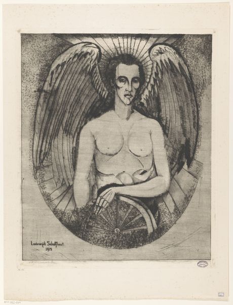 This is Lodewijk Schelfhout’s etching, “Portret van Ange Mara Picnot.” This print exemplifies the craft of etching, a meticulous process where an image is incised into a metal plate, inked, and then transferred to paper under immense pressure. Looking closely, you can almost trace the artist’s hand as it guided the etching needle. The fine lines create depth, shadow, and texture, particularly noticeable in the subject’s face and hands. Consider the labor involved: the physical effort of etching, the skilled application of ink, and the precise calibration of the printing press. These processes elevate the work beyond mere representation. This portrait offers a glimpse into the artist's world, and the material and processes used in its creation speak volumes about its cultural significance, reminding us that art is as much about labor and skill, as it is about aesthetics.
