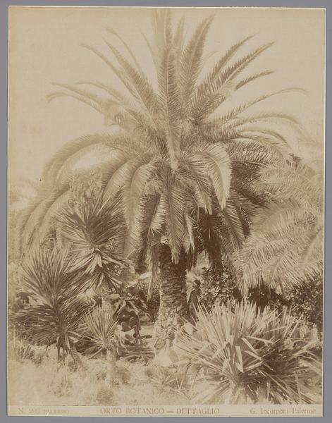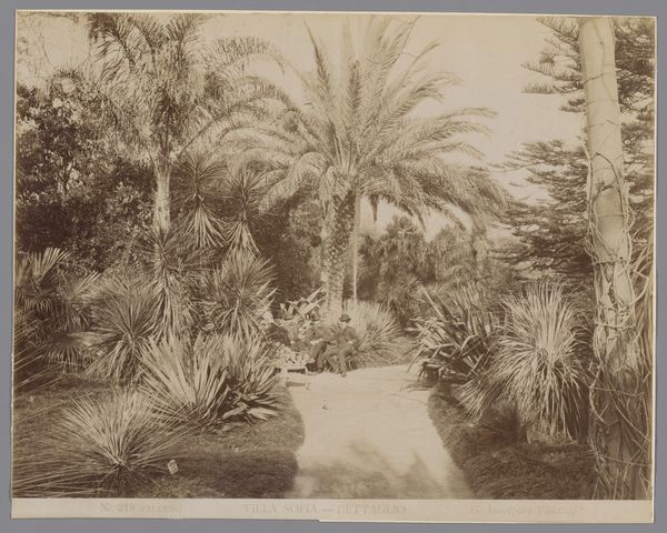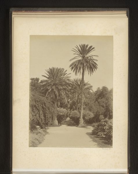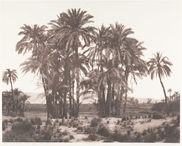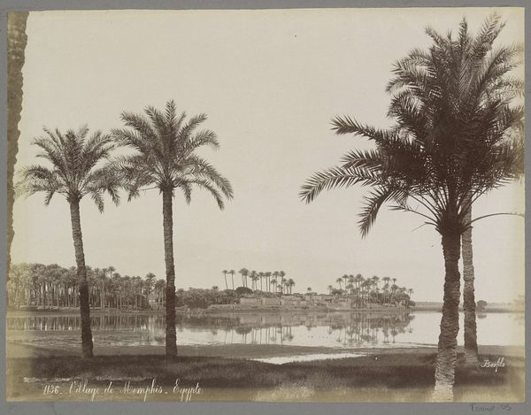 Curator: This is "Arabs on the Riverbank," a Gelatin Silver Print created around 1910. It’s attributed to Rudolf Franz Lehnert. Editor: My initial reaction is one of subdued stillness. There's something so quiet and contemplative about the light, almost monochromatic and dreamlike. Curator: Lehnert, along with Ernst Landrock, produced numerous images reflecting an Orientalist aesthetic during this period. We see examples of their work within museum collections that grapple with such categorization to this day. This is an excellent specimen reflecting these contextual problems. Editor: You know, I'm immediately struck by how the technical choices – the gelatin silver print process – impact our reading. The stark contrast, the graininess... it lends a certain air of authenticity, even though, as we know, these images were often staged. Think about how staged they are for mass consumption, which has to be at the forefront. Curator: Absolutely. The labor involved in staging these photographs and producing prints like these played directly into the colonial power structures of the era. These photographers employed local labor. Further, we must discuss the cost and accessibility of photographic materials as commodities for travelers in the region, highlighting consumption in ways that were meant to be inaccessible to those who appear in the picture. Editor: It’s difficult to look at photographs from this period without considering the complex social dynamics at play. I see the figure in the photograph appearing almost diminutive when set against the backdrop of the tall palms. Was this romanticized, idealized presentation a factor that prompted travelers from the West to visit these far-off lands? Curator: These photos, along with other visual depictions from paintings to postcards, greatly shaped Western perceptions. They established visual tropes of North Africa and the Middle East for audiences unfamiliar with those regions. Furthering consumption patterns of "goods" and ideals. Editor: Examining Lehnert's techniques and use of materials gives insight into the construction of the image and its role within the wider context of colonial and orientalist representation. This also underscores how such images can circulate through different social spheres. The original print now lives here at the Städel Museum, as one might view a prized artifact. Curator: A lasting commentary then on the image itself. Editor: Precisely, and that tension makes the artwork all the more intriguing.