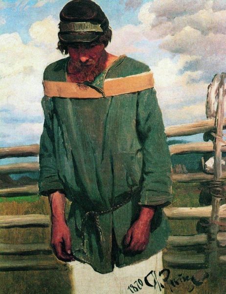 Editor: Emile Claus’s "The Old Gardener," painted in 1885. It looks to me like he has caught the gardener stepping outside and blinking at the sunlight; he almost looks surprised. What do you notice when you look at it? Curator: Notice first the way the light is handled. It doesn’t fall uniformly across the subject but instead creates distinct areas of illumination and shadow. See how this contrast defines the form of the gardener, drawing our eye to particular textures. Claus clearly experimented with plein-air painting, observing shifts of natural light. Editor: Yes, I see it. The light almost obscures one half of him, while the other shines. Are you drawn to any particular elements? Curator: The materiality of the paint itself is compelling. Observe the application of the pigment; thick impasto in some areas, particularly the foliage, creates a palpable sense of volume, contrasting with the smoother treatment of the figure’s face and clothes. Editor: So, even though the subject is simple, a man and his garden, it's all about the execution. What does that choice mean in this context? Curator: Precisely. The structure, the composition…it is far from simple. Focus on how Claus’s formal choices heighten our attention to the visual experience. We are not looking at a man; we are perceiving light, color, form, expertly arranged on canvas. Editor: I understand, the way it’s made is just as important as what is depicted. Curator: Indeed. Considering this formal lens provides insight into how visual components function together to produce an effect that moves beyond literal representation. Editor: It gives you a new way to look at things for sure. Thanks for opening my eyes to that.
