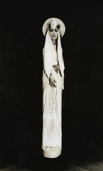 Rudolf Láng created this costume design for Sartre-Euripides' "The Trojan Women," using watercolor and ink on paper. The loose brushwork and absorbent nature of the paper create a sense of fluidity, evoking the drapery of classical garments. The diluted washes allow the white of the paper to shine through, adding a translucent quality to the mauve and brown hues of the robes. Splatters and drips of ink contribute to the sense of immediacy, as if the design was captured in a fleeting moment of inspiration. The application of ink emphasizes the weight of the garment and contributes to the emotional depth of the costume. By layering these materials, Láng adds dimension and texture to the design. The use of craft is to create emotion, not just representation. It emphasizes the importance of both material and process in understanding the artwork's complete meaning.