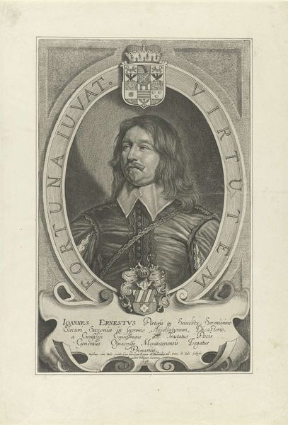 Editor: This is "Portrait of Magnus Gabriel de la Gardie," a print made in 1649 by Pieter de Jode II, housed at the Rijksmuseum. The intricate details are captivating; it’s amazing all the information communicated through line and the layering of textures. What can you tell me about it? Curator: Let's think about the materials first. As an engraving, its production involved specialized labor. The metal plate itself – likely copper – needed to be sourced, prepared, engraved. The very act of making such a print signals something. Given the subject’s position, what societal factors allowed for this object’s creation and distribution? Editor: I see what you mean. Creating a print suggests an intention for wider circulation, right? Would the means of its creation relate to notions of status or power back then? Curator: Absolutely. Engravings such as this served as propaganda, effectively. Look at the framing; the elaborate details imply prestige and valor. What do the lions represent in that context? Think about the cost and time invested, and who benefitted. Who do you think might consume prints like this and where? Editor: So, not just about who is depicted, but also about the socio-economic relationships that made its creation and distribution possible. This provides context about its value and intended message. Curator: Exactly. Considering these prints as objects tied to labor, materials, and consumption gives us new ways to think about their meaning and purpose in 17th-century society. Editor: Fascinating. Thinking about art in terms of its material existence and social context gives a much deeper understanding of the work. Curator: Agreed. It reminds us that art never exists in a vacuum.