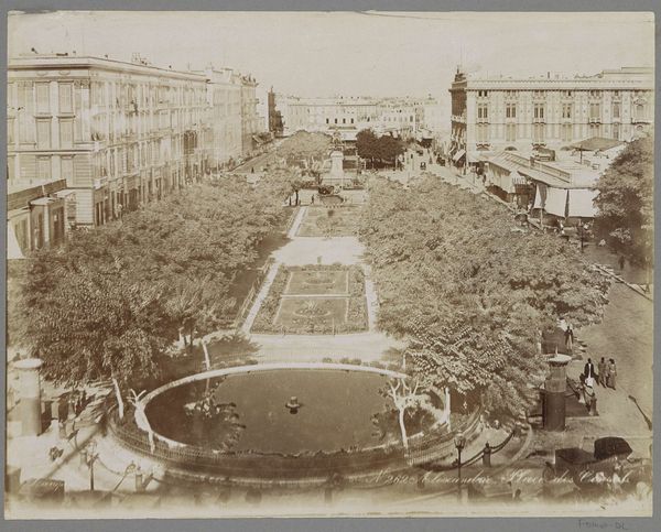 Curator: William Henry Jackson captured this image, "Court of Honor, Looking East, World's Columbian Exposition." Editor: It has a very grand, almost dreamlike quality to it, doesn't it? The scale is immense, yet the monochrome lends a sense of distance. Curator: Indeed. Jackson, renowned for his Western landscapes, turned his lens here to document the 1893 Chicago World's Fair. It reveals much about America's aspirations at that time. Editor: Right, this "White City," as it was called, was a deliberate statement of progress and civilization—a counterpoint to the social issues simmering beneath the surface, like labor unrest and racial inequality. Curator: Precisely. The architecture, the layout, everything was designed to project an image of American exceptionalism on the world stage. Editor: And look at the flag so prominently displayed. It speaks volumes about the intended narrative. Curator: It does. Considering the indigenous populations that were displaced and ignored during this period, Jackson's picture is a layered artifact—a celebration and a stark reminder of what that "progress" cost. Editor: Absolutely. This image invites us to unpack not just what's visible, but also the complex realities that it obscures.
