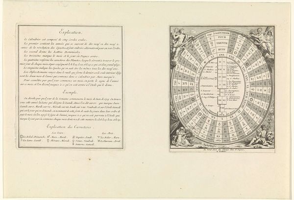 Editor: Here we have "Ganzenbord der Constitutie Unigenitus van paus Clemens XI," dating back to around 1723-1724, created by an anonymous artist. It’s an engraving printed on paper, housed at the Rijksmuseum. It’s overwhelmingly textual at first glance, almost like an elaborate game board. What do you see in this piece? Curator: What strikes me is the level of textual information embedded within the visual framework. Look at the paper itself: the raw material, and the conscious labor behind producing and distributing such printed material. It reflects not just artistry, but the mechanics of social discourse during that period. The physical labor involved, from papermaking to printing, highlights a certain social dynamic that is often overlooked in art history, wouldn’t you agree? Editor: That’s interesting. It’s easy to forget the sheer labor involved in pre-industrial printing. What purpose might these "mechanics of social discourse" have served? Curator: Well, examining the process reveals that these aren't just aesthetic decisions, but rather strategic maneuvers intended to circulate certain viewpoints within a very specific audience. Who was consuming this, and under what material conditions were they doing so? The piece can only have functioned within specific conditions of accessibility. Can we assume, given its complexity and use of language, that the working classes would have had the means or, frankly, the inclination to access the discourse being conducted through such an object? Editor: So, it’s not simply about the artistic skill involved in the engraving, but also about how the materials and their accessibility shape who gets to participate in the conversation. Curator: Precisely! By considering the means of production and distribution, we gain a clearer picture of the social forces at play and challenge the idea of a singular, objective art-historical narrative. It encourages a conversation around materiality. It pushes us to acknowledge that artworks, especially prints like this, are more than aesthetic objects: they are material products embedded in complex systems of production and consumption, isn't it fascinating? Editor: Absolutely. Thinking about it that way really opens up a whole new perspective! Thanks.