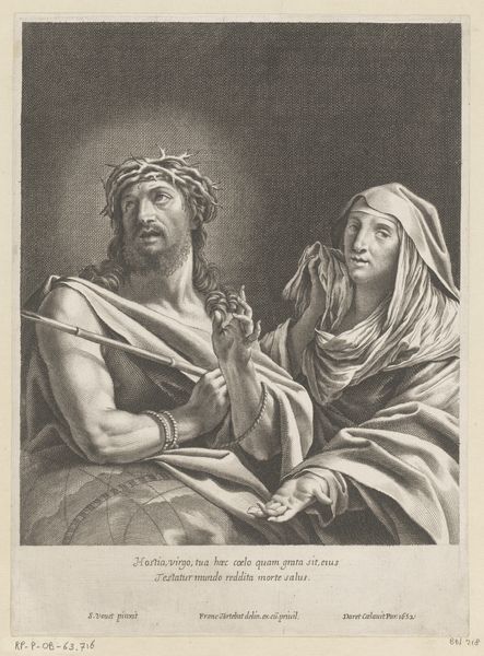 Editor: So, here we have Giovanni Volpato's engraving, "The Delphic Sibyl after the fresco by Michelangelo in the Sistine Chapel," created between 1784 and 1790. It strikes me as a study in contrasts: the sibyl's serene face against the implied drama of prophecy, and the cool tones of the engraving against what must have been vibrant colors in Michelangelo's original fresco. What do you make of it? Curator: It's interesting that you mention the contrast because it encapsulates a lot of what was happening at that time. This is a Neoclassical piece interpreting a Renaissance artwork, right as the Grand Tour was becoming popular. This print allowed for mass consumption of what had only been available to elites, in Rome. It democratized art. Now, knowing that it served as a souvenir, how does this influence the status of Michelangelo's frescos? Editor: That's a fantastic point! Turning something sacred, a religious scene, into a popular souvenir seems almost...blasphemous? Were there debates about that at the time? Curator: Absolutely. There were discussions around authenticity, originality versus reproduction, and access to art. Prints like this one by Volpato fueled those debates. They raised questions about who gets to define "high" art, and what purpose should art serve – religious, political, decorative, or something else entirely. Looking closer at the sibyl's positioning alongside young scholars or artists in the background, how can we interpret what her gaze means to them? Editor: Hmm, perhaps they see her wisdom as an inspiration? Or perhaps they are reinterpreting that knowledge for a modern world? It feels like Volpato’s engraving becomes a new object of interpretation. Curator: Exactly! Volpato wasn't just replicating Michelangelo. He was participating in an ongoing conversation about art, culture, and the role of the past in shaping the present. It gives us great insight into that time. Editor: That makes me appreciate it much more. Thanks! Curator: You're welcome! Considering historical context can add exciting layers to something we may think we already know.