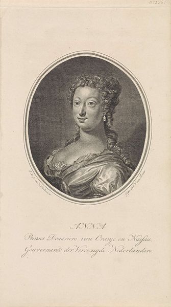This is Willem van Senus's monochrome print of Carolina, Princess of Orange-Nassau. It is a formal portrait, where the figure is neatly framed within an oval, creating a structured and composed image. Notice how the delicate lines and stippling create subtle gradations of light and shadow. This technique models the Princess's features and the intricate details of her attire. The symmetry of her pose, combined with the oval frame, lends the portrait an air of classical order. Yet, the almost photorealistic style adds an element of modernity to this traditional form, reflecting the evolving artistic tastes of the time. The choice of a monochrome palette serves to strip away the distractions of colour, focusing our attention on form and structure. The composition invites us to consider how the elements of line, shape, and texture come together. It is a testament to the enduring power of portraiture, and the way it conveys both the likeness and the status of its subject.