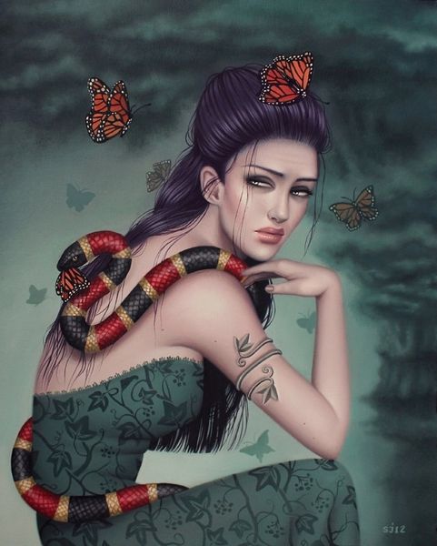 Editor: This is “Wishing Well”, a painting by Sarah Joncas. I don’t know the exact date. It depicts a woman sitting pensively on a well with butterflies fluttering around her. It feels like a scene from a fairytale, but a very melancholy one. How do you interpret this work? Curator: The melancholy definitely speaks to me. But beyond individual emotion, I see this as a meditation on the roles assigned to women. The "wishing well" is traditionally associated with hope and dreams, but what happens when those dreams are circumscribed by societal expectations, leaving a woman trapped, almost like a Rapunzel figure, within the confines of a well, within prescribed roles? Editor: That's a fascinating interpretation. I hadn’t considered the well as a symbol of confinement. I was more focused on the butterflies as symbols of transformation and freedom. Curator: Absolutely, the butterflies add another layer. Are they symbols of hope and change? Or are they illusions of freedom that tease her, highlighting her lack of agency? Consider how the dark, stormy sky contrasts with the delicate beauty of the butterflies, further emphasizing the internal conflict and perhaps even social oppression the figure represents. Does she even notice the butterflies? Editor: That contrast really clarifies how to understand her. I was reading her sadness as romantic, but your focus on the limitations imposed upon her brings an important dimension. I am curious to research more about how the artist represents her subjects. Curator: Exactly. The artist utilizes fantasy illustration and symbolism, reflecting and commenting on female representation in contemporary society. By situating this artwork in current theoretical context, we recognize its broader commentary on gender, identity, and freedom. Editor: This discussion has completely transformed how I view the painting. It’s much more than just a pretty picture. I’m seeing a critique of societal expectations. Curator: And that’s the beauty of art – it’s a constant dialogue between the artwork, the viewer, and the world around us.
