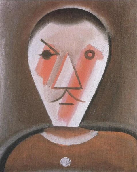 Curator: So much blue! I see loneliness; what’s your first take? Editor: I’m stuck on the oil itself. It's 1957, and here's Blackman's “Face," that blue—I wonder what pigments were easily accessible then. You know, the Cobalt Blues were pretty tricky and expensive. Curator: Blue seems apt, considering Blackman's personal life back then. Those early Alice paintings of his speak to that fragile domesticity, tinged with anxiety... like this distilled face staring off. Editor: Fragile, yes, and economical too. Observe the painting's materials; how the very *idea* of a face gets sculpted from minimal brushstrokes. That simple reduction… What's discarded speaks volumes. Curator: I wonder if it was discarded, or if he chose a dream instead. It's abstracted to its purest form. That line forming the nose. A single eye reflecting an unknown feeling. Editor: Look at the lack of clear figuration—isn't this also Blackman questioning art's function, or its place in a newly material postwar world? Like a product but then like a signifier... what a contradiction! Curator: Isn’t all art contradictory, though? Isn't it all material? But isn't it about transcending matter in order to explore what is inexpressible otherwise? What could we make of it without Blackman’s struggle and intent? It might as well be wallpaper. Editor: I appreciate that you remind us not to ignore the intent. So here Blackman used his skill and chose those particular oil paints, right at that time, to confront both the world and this singular, abstracted essence... And from that clash comes something meaningful for all of us, after all. Curator: Perhaps... Something evocative at least.
