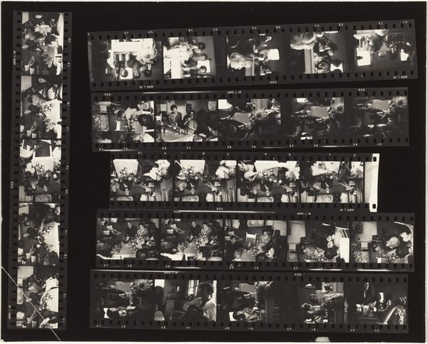 This is "Early New York City no number" by Robert Frank, made at an unknown date with gelatin silver print. Look at this matrix of different images, Frank’s way of seeing becomes a kind of fragmented diary. There's a particular frame, almost centered, where an older man is caught in motion, mid-sentence perhaps, caught in the midst of life. The grain is so present, the blacks rich, giving a tactile feel to the print. It feels like you could touch the shadows. The composition is raw, direct. Each frame pulses with its own rhythm, like individual thoughts strung together. Frank reminds me a bit of Garry Winogrand, in that sense of immediacy, but maybe with a touch more melancholy. It all feels so unfinished, alive. This piece isn't about answers, it's about the ongoing conversation, the beautiful, messy process of trying to figure things out.