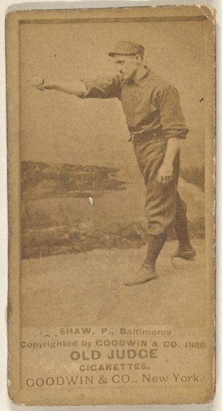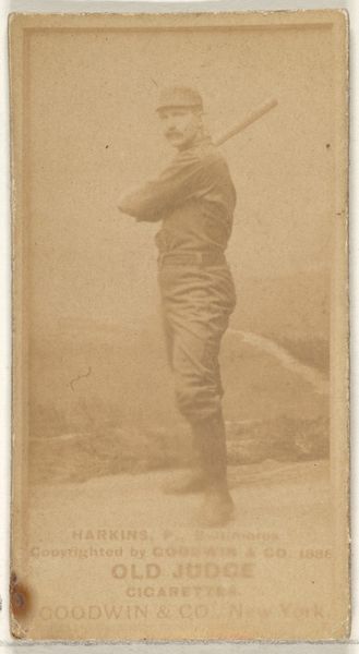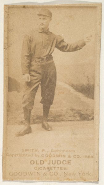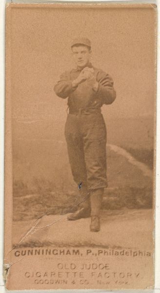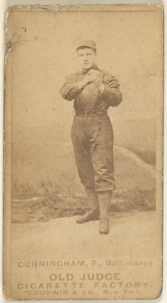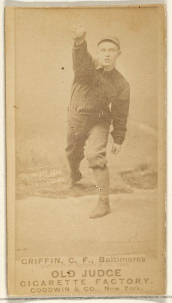 This photograph of William F. "Bill" Greenwood, a second baseman for Cleveland, was made in 1888 by Goodwin & Company for Old Judge Cigarettes. It is an albumen print, a process popular in the 19th century that used egg whites to bind the photographic chemicals to paper. What makes this image so interesting is its connection to industry. These cards were essentially advertisements, mass-produced and included in cigarette packs. The sepia tones are a direct result of the albumen process, giving the image a warm, nostalgic feel that contrasts with the modern industrial methods of its production. Consider the labor involved, from the photographers to the factory workers assembling the cigarettes and inserting the cards. These images weren't just about baseball; they were about building a brand and driving consumption in a rapidly industrializing America. It prompts us to think about the social context of image-making and its entanglement with commerce.