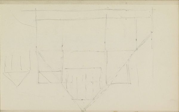 Curator: Welcome. Before us is "Geometrische vormen," a pencil drawing on paper created in 1908 by Carel Adolph Lion Cachet, here in the Rijksmuseum. It showcases his engagement with emerging abstraction at the time. What strikes you initially about this piece? Editor: It's incredibly minimal, isn't it? Almost austere. Just faint lines, suggesting shapes. There's something quite tentative about the marks. You can almost feel the artist thinking through the form, grappling with it. It also strikes me as interesting how modern movements looked at this piece after. Curator: Absolutely. The work points to the simplification of form and structure characteristic of early Modernism. Cachet, primarily known for his decorative work, explores pure geometric shapes in a way that challenged the art world’s perception on his role in art, creating tension at that time in society about art versus craft. Editor: Yes, but beyond art circles, how did average people respond to this? Did they see in it a reflection of their rapidly changing urban and industrial lives, mirroring the mass-produced structures then being created, even within Cachet’s work in graphic design? Curator: Some certainly did, especially those involved in architectural or design reform movements. The simplicity resonated with their call for functionality and truth to materials. But for others, the lack of immediate representational imagery made it inaccessible, fueling the ongoing debate about the role of art in reflecting society, or challenging its conventional standards. Editor: Which is itself a material reaction! Pencil, paper – basic elements transformed into this potent dialogue. Consider the labor involved in creating such simple marks – what kind of paper was Cachet using and the type of pencil: These details show Cachet's careful production, and how different these objects could affect his practice. Curator: Precisely. "Geometrische vormen" prompts us to examine art not just as aesthetic form but as active commentary. It made some conservative art circles view Cachet’s abstraction as a commentary of the society they were in and the art Cachet produced for them. It pushes us to remember art exists within– and pushes against – societal expectations. Editor: It shows how seemingly rudimentary tools and materials give way for these wider art interpretations. I find myself appreciating its boldness even more now. Curator: Indeed. It’s a quiet rebellion sketched onto paper.