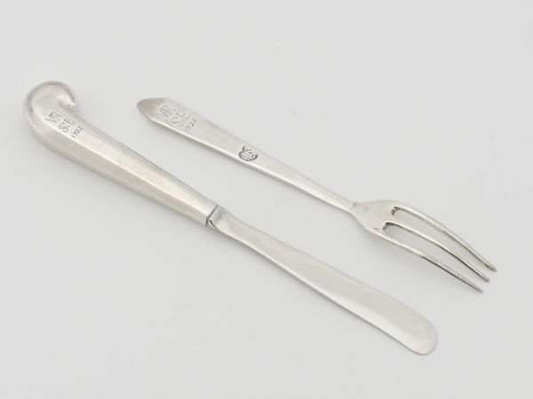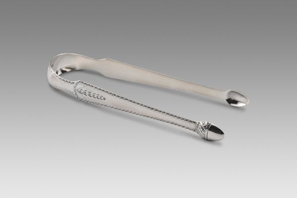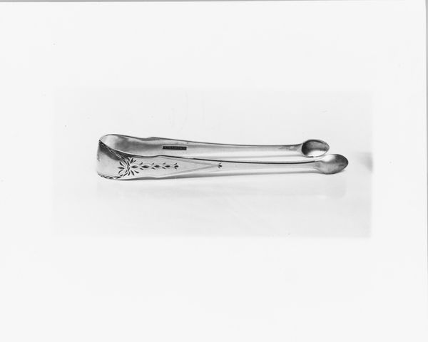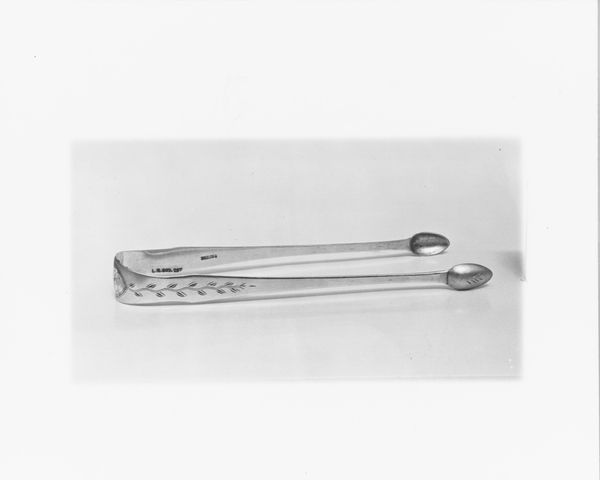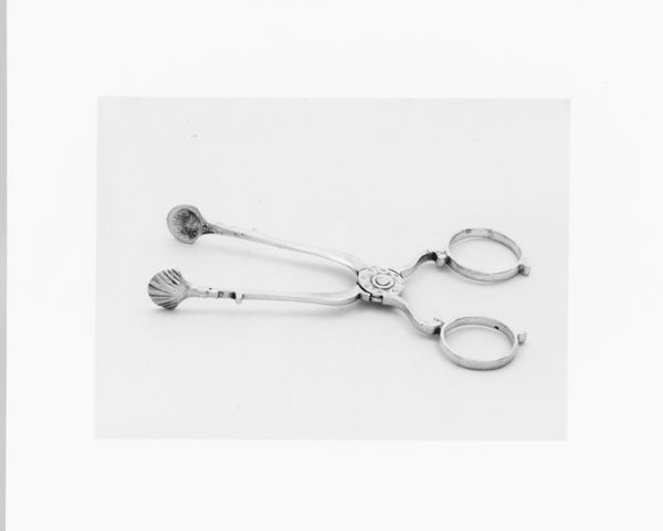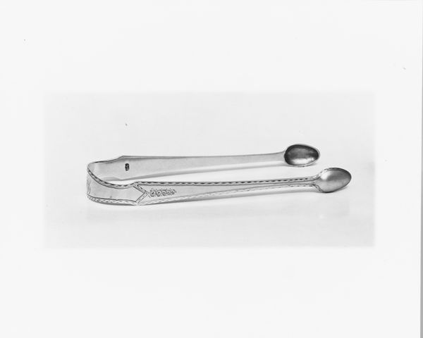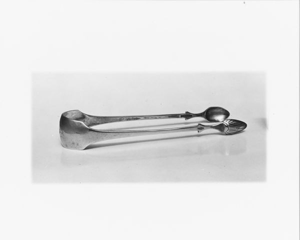 Curator: There's an almost brutal elegance to these. Something about their simplicity suggests a forceful presence despite their intended delicacy. Editor: Indeed. What we're looking at are sugar tongs crafted between 1802 and 1805, made of silver, attributed to Thomas Warner, currently held in the collection of the Metropolitan Museum of Art. They speak volumes about the ritual of consumption in early 19th century society. Curator: The shape is fascinating. The balance of smooth curves and sharp angles; there’s almost an architectural feel. I see these as objects carrying a lot of cultural information about etiquette and status, where sugar consumption was tied to both global trade and societal standing. Editor: Absolutely. Think about it – sugar, once a luxury, became a signifier of wealth and gentility. These tongs represent a whole history of colonialism and commerce, materialized in an everyday object. It speaks to the rise of consumer culture. They're a subtle reflection of the social stratification of the time, especially as it related to trade and the public demonstration of gentility. Curator: Precisely! It transforms the act of taking sugar into a delicate performance. And the silver material; it wasn’t merely functional. It carried an aura of prestige, making the ordinary extraordinary. They weren’t just tools, but emblems of belonging to a certain social order, maybe? Editor: I'd agree. Silver served both functional and symbolic roles. Consider the craftsmanship of such an object. We need to remember the artisans who shaped the piece too and also the political economy surrounding sugar, labor and trade at the time. It’s important to understand them as integral pieces of social history. Curator: Seeing them isolated like this invites reflection. I think the way such objects mediate our relationship to everyday experiences is revealing. I can sense so much behind these seemingly simple silver curves. Editor: Precisely. Studying these objects and revealing how society can become physically shaped and expressed by something as minimal as sugar tongs becomes extremely valuable. Thank you for sharing your wonderful observations.