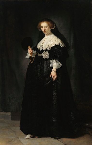 Anthony van Dyck rendered this "Portrait of a Flemish Lady" with oil paints. Immediately striking is the contrast between the dark velvet textures of the woman's dress and the bright, geometrically precise ruff encircling her face. Van Dyck masterfully employs chiaroscuro, a technique using strong contrasts between light and dark, to sculpt the figure from the background. Consider how the textures and compositional elements function as signs of status. The large ruff, for example, speaks to the sitter’s affluence. Likewise, the lace details and the gold threaded garment underneath signal her place within a structured social hierarchy. This work invites reflection on representation and identity within the Baroque era. It is a complex interplay of form, material, and cultural codes which reflect not only the individual but the structures of society itself.