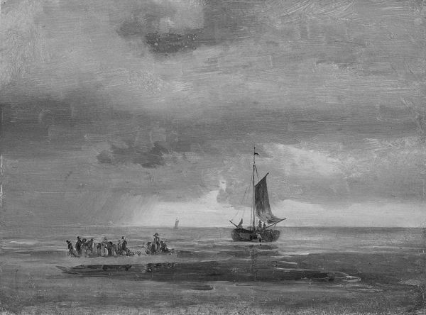 Simon de Vlieger painted 'Ships off the Dutch Coast', with oil on canvas, capturing a scene of maritime life during the Dutch Golden Age. This era was defined by burgeoning trade and naval power, yet also marked by social hierarchies and colonial expansion. De Vlieger's seascape transports us to the 17th century, where ships were vital to the Dutch economy and identity, but also symbols of exploration and exploitation. The painting reflects the complex relationship between the Dutch people and the sea: it was a source of prosperity and a stage for geopolitical power. The black and white tones evokes a sense of the harsh realities of life at sea. Consider that the livelihoods of sailors, merchants, and enslaved individuals were all intertwined with these vessels. The sea, therefore, becomes a contested space, bearing the weight of both dreams and historical injustices. This artwork is not only a landscape, it's a cultural and historical record of an era that continues to shape our world.