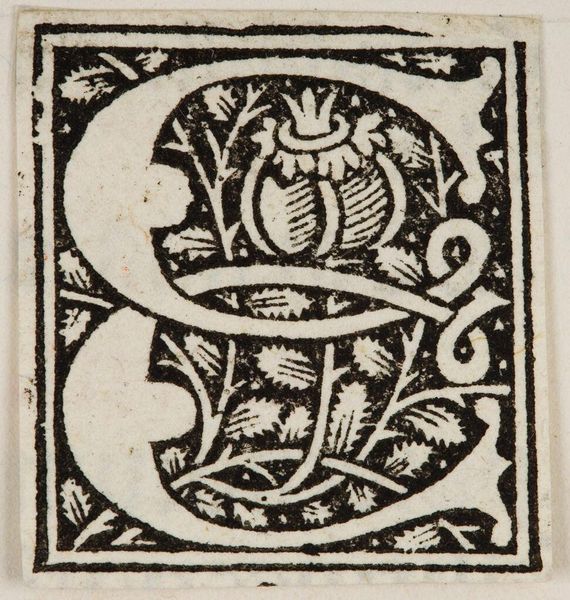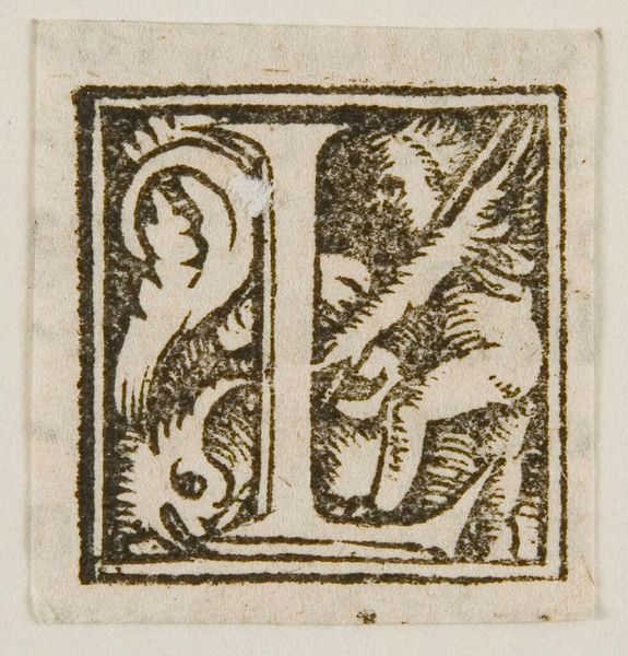 Curator: Here we have "Letter E," an anonymous work held here at the Harvard Art Museums. Editor: It has a rather whimsical mood, don't you think? The composition feels quite balanced, even with the creature clinging to the letter. Curator: The letterform itself provides a stable structure, around which the ornamental details and the winged figure find their place. The engraver's line creates texture. Editor: That winged figure is striking. It reminds me of Eros, a symbol of love and perhaps a touch of divine inspiration being brought to the letter. Curator: The figure's integration directly into the 'E' underscores the interplay between form and image. It seems to challenge the very purpose of the letter itself. Editor: I see a blending of classical mythology with the alphabet itself, bringing a certain weight of cultural history to the letter 'E.' It speaks to how we imbue language with so much meaning. Curator: Indeed. It is a fascinating example of how graphic elements can be both functional and profoundly meaningful. Editor: A lasting testament to the power of symbols, certainly.
