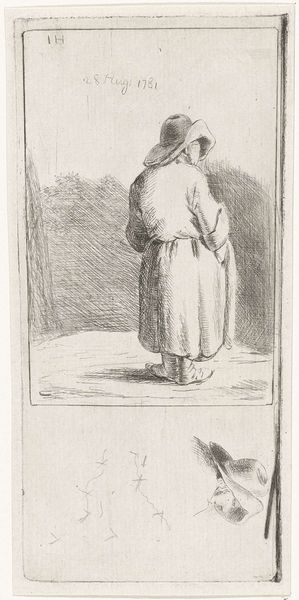 Moses ter Borch created this drawing of Saint Jerome in prayer using pen in grey-brown ink and grey wash. The composition immediately draws us into a contemplative mood. Ter Borch uses delicate lines and tonal washes to build the figure of Saint Jerome, kneeling in what appears to be a humble grotto, which imbues a sense of quiet reverence. The artist's approach to line is particularly striking; it's used sparingly, yet with precision, defining form while also allowing the figure to merge subtly with the surrounding landscape. The choice of a muted palette reinforces this sense of austerity and introspection, inviting us to look beyond the representational and consider the spiritual underpinnings of the piece. The overall effect challenges any notions of the saint as a figure of power or authority, instead emphasizing humility and reflection. This emphasis encourages a continuous and evolving dialogue between the viewer and the artwork.