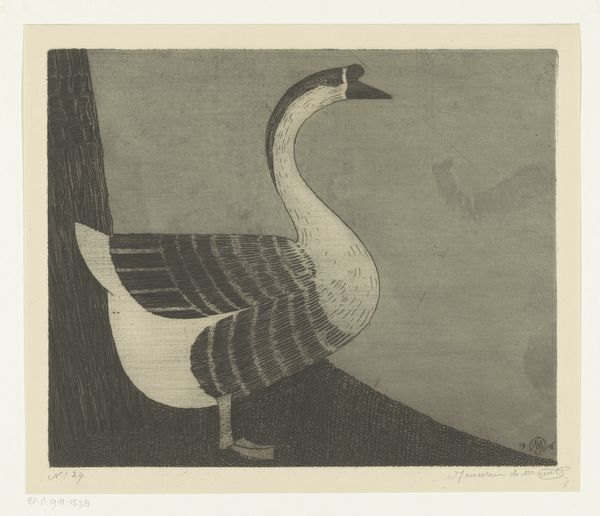 Julie de Graag made this woodcut called "Swimming Duck", sometime between 1900 and 1924. It’s a simple image, just black and white, but it’s got this incredible sense of movement. You can tell how much the artist understands the essence of the duck, she has distilled it into a few essential lines. I love the way the black ink pushes up against the paper. It’s not shy. It's like she’s carving out space for the duck to exist. The shape of the duck itself has this gentle curve, like it’s floating. It reminds me of Art Nouveau, but it’s also got something raw and honest about it. Look at how the neck gracefully extends into its head. It's minimal, yes, but also so graceful and full of life. It reminds me a little bit of some woodcuts by Gauguin, though much more simplified. Ultimately art is always a conversation, an exchange of ideas. This little duck is a testament to that, and a beautiful reminder that sometimes less really is more.