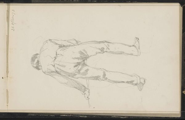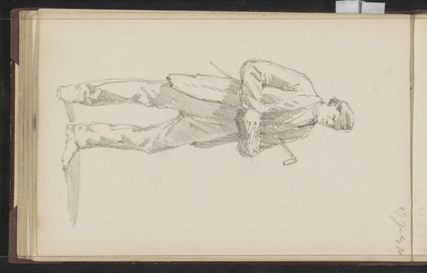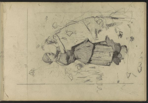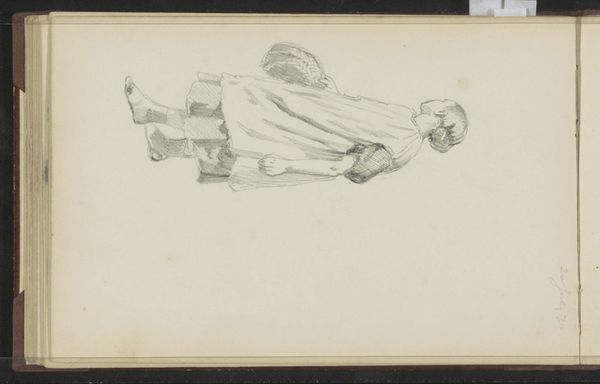 Editor: Here we have Cornelis Springer's "Architectuurstudie en een jongen," a pencil drawing from around 1863. It’s quite simple, really, a quick sketch. What strikes me is the contrast between the detailed architectural element and the more loosely rendered figure of the boy. How do you interpret this work? Curator: This drawing invites us to consider the relationship between architectural representation and lived experience in the 19th century. Think about the power structures embedded within the architectural designs themselves. Who benefits from the grand facade depicted? And what does the presence of the boy, seemingly disconnected from it, suggest about access and social mobility at the time? Editor: That’s fascinating. I hadn’t considered the social implications of the architecture itself. The boy just seemed like a random element. Curator: Consider it more closely. Is he meant to inherit or benefit from such opulence? Or is he simply passing by, an observer, perhaps excluded from the world that architecture represents? Does his informal pose contrast deliberately with the rigidity of the architecture? What do you think the artist wanted to convey by juxtaposing those elements? Editor: I suppose his presence raises questions about who is included and excluded by design, quite literally. It's less a study and more of a silent commentary on the society of the time. Curator: Precisely. By drawing attention to the marginalized figure alongside the prominent architecture, Springer prompts us to think critically about the societal implications of urban development and the unequal distribution of space and privilege. Editor: This has really broadened my understanding. I went from seeing a simple sketch to recognising a complex social commentary! Curator: And that is why situating the artwork in its broader cultural context reveals rich layers of meaning and relevance for us today.