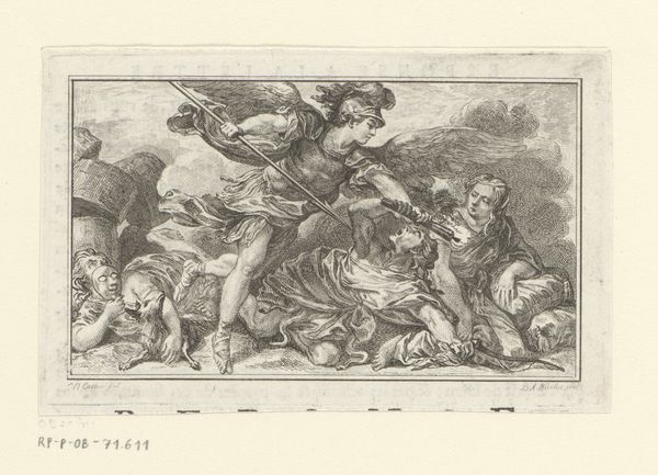 Felix Meyer created this pen and wash drawing, "Classical Combat," during the late 17th to early 18th century. It depicts a violent clash between warriors, set against a backdrop of spears and onlookers. Meyer's work reflects the era's fascination with classical antiquity, yet it also subtly reinforces the power dynamics of his time. The idealized, muscular bodies evoke the tradition of heroic male nudes, a common trope used to glorify masculine strength and dominance. Consider, though, that such depictions often excluded the experiences and realities of those who did not fit this narrow ideal. In these combat scenes, we might also find echoes of the political and social tensions prevalent during Meyer's lifetime. Wars and power struggles were constant, and art often served as a means to both celebrate and critique these conflicts. "Classical Combat" invites us to consider the human cost of such battles. Meyer's drawing prompts reflection on the narratives we inherit and the values they promote.