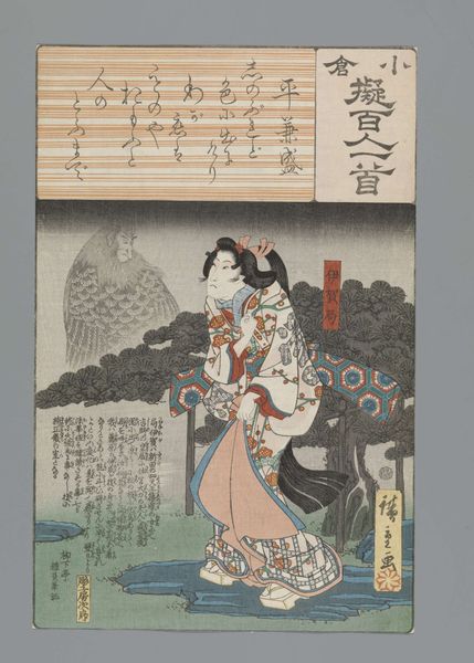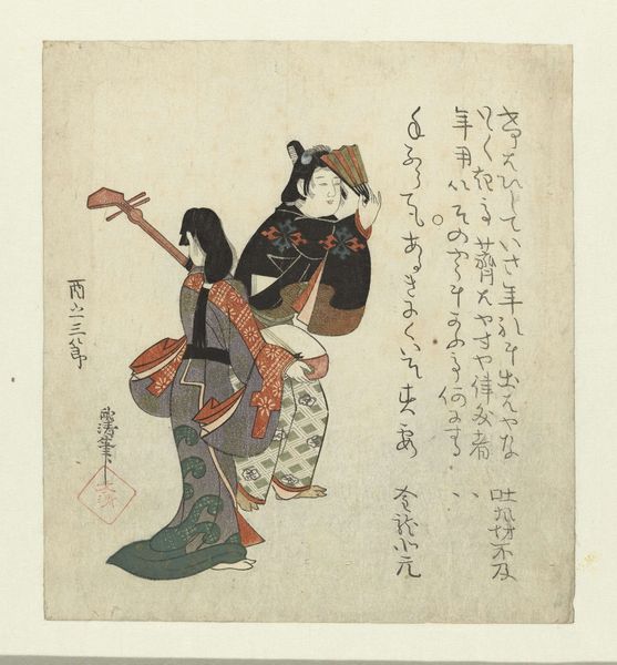 This print, “Akoya met haar dienstmeisje,” was created by Utagawa Hiroshige using woodblock printing, a quintessential technique of the Edo period. The process begins with a drawing, which is then meticulously transferred onto a block of wood, usually cherry. Skilled artisans carve away the negative space, leaving behind a raised image. Each color requires a separate block; Hiroshige's mastery is evident in the precise registration and delicate gradations achieved with multiple blocks. Look closely and you will see the subtle texture of the paper, made from the inner bark of the gampi tree, adding to the print’s tactile quality. Woodblock prints like this were not considered ‘high art’ in their day, but rather a popular, mass-produced commodity. They reflect the commercial culture of Edo-period Japan, making artistic expression accessible to a wide audience. The incredible level of handcraft and artistic skill that went into these prints challenges the traditional distinction between art and craft.