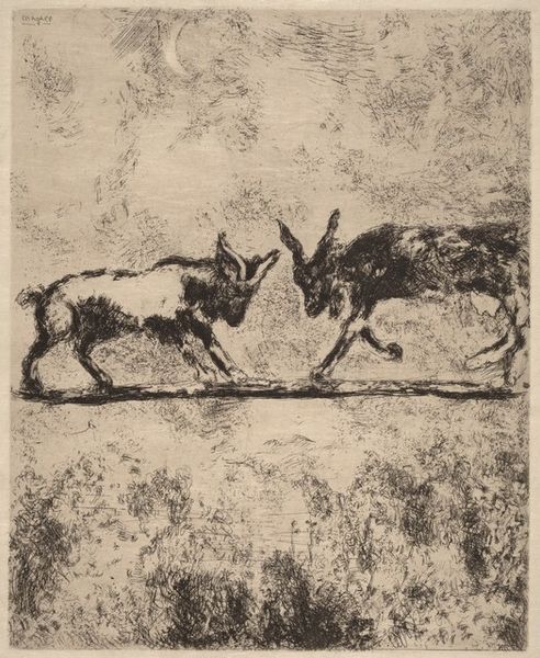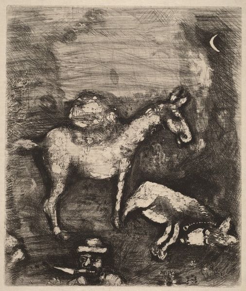 Marc Chagall’s "The Eye of the Master" invites us into a dreamlike landscape. Rendered in etching, the print presents a world where animals float freely and human figures appear almost as specters. Born in Belarus, which was then part of the Russian Empire, Chagall’s work often grapples with his Jewish heritage and the rapidly changing social landscape of early 20th-century Europe. This piece, with its folkloric imagery, may speak to the artist’s own sense of cultural displacement. The floating animals can be interpreted as a reference to Jewish folklore and Chagall's personal experiences, reflecting the themes of displacement and cultural identity. To truly understand the layers of meaning embedded in Chagall's work, we might delve into studies of Jewish folklore, histories of early 20th-century European art, and Chagall’s own biography, all of which can help us appreciate the depth of the artist’s cultural vision.