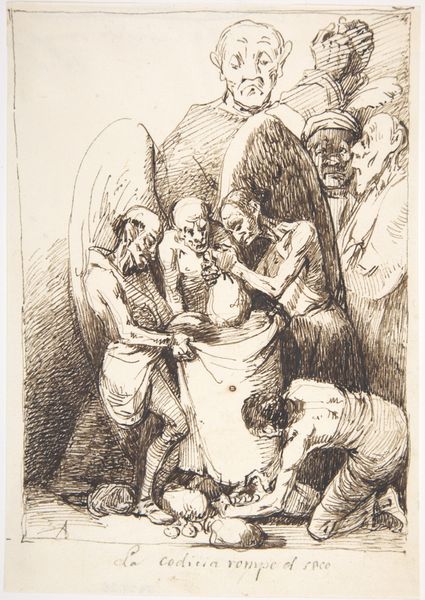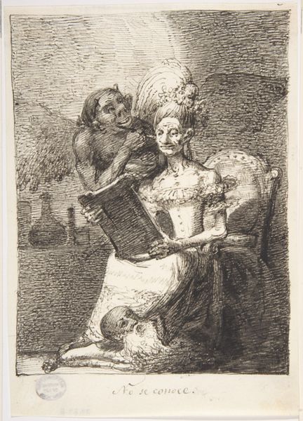 Leonardo Alenza created this ink and wash drawing, "They'll Get Their Desserts," amidst the turbulent social and political landscape of 19th-century Spain. The drawing presents a haunting image, laden with the symbolism of its time. We see a young woman caught between two figures: a man kneeling before her and an older figure with a conical hat. The inscription, "Buen pelo echará," hints at the dark implications of power and seduction. Alenza's work resonates with the themes of social critique and the grotesque. The figures embody the artist’s reflections on the frailties of human nature, and the all-consuming power of desire. The woman's vulnerability is heightened by the predatory stance of the elder, challenging traditional representations of women. The drawing invites us to consider the emotional and psychological toll of societal expectations and power dynamics. Ultimately, "They'll Get Their Desserts," serves as a powerful commentary on the ways in which societal structures shape individual destinies, reminding us of the ever-present shadows of power.