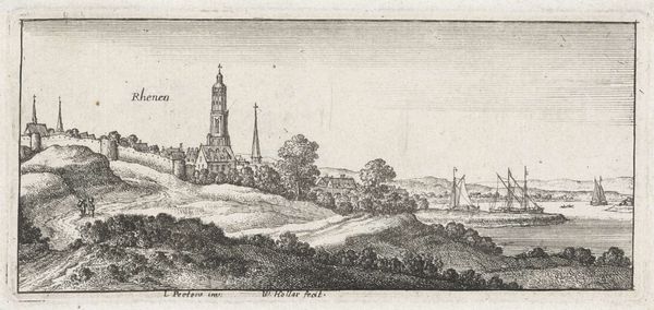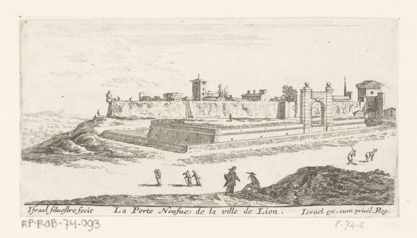 Curator: Immediately, what strikes me is the almost dreamlike quality, despite the precision of the linework. There's a stillness, a tranquility conveyed through this ordered, yet detailed composition. Editor: You're looking at "Gezicht op Châtillon," a pen and ink drawing by Albert Flamen. It likely dates sometime between 1648 and 1692. A village scene unfolds, rendered with remarkable detail for the medium. Curator: Yes, it’s that tension between meticulous representation and this underlying sense of…yearning. Notice how the artist uses the rising smoke – always an ethereal and transient image– juxtaposed against the solid architecture. It feels like a longing for something beyond the physical constraints of the village. Is that tower, that vertical axis anchored in the landscape, offering spiritual release, or imprisonment? Editor: Perhaps it reflects both. The formal arrangement – the perspective leading our eye toward the village center, anchored by the church spire – gives a sense of order, stability. However, that precise pen work, the delicate cross-hatching, also reveals an attentiveness to detail bordering on obsession, creating this subtle unease you pick up on. I can detect an old engraving style too. The details of daily life are sketched in a style that lends to a sense of immediacy. Curator: And the light! Despite being monochromatic, the artist masterfully suggests light playing across the fields, creating depth and texture. The tiny human figures almost become symbolic, archetypes perhaps, connected to the land. They're so diminutive against the vastness of the landscape and village, yet utterly necessary to complete its harmony. It makes you ponder the human role. Editor: I’d never considered that. It also makes me question what a personal sketchbook of a time so long ago means. Thank you for offering a new perspective. I saw only a pleasing and precise pastoral composition but you see symbols of longing, questioning our understanding. Curator: Well, thank you for inviting my reading. Every image holds layered meaning, which can open portals across time.