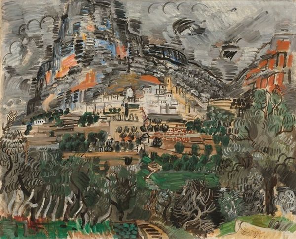 El Greco painted this landscape, View of Toledo, with oil on canvas. The city is shrouded in ominous, swirling storm clouds in striking shades of greens and grays, and the buildings become spectral forms beneath the dramatic sky. El Greco's use of color and brushwork is highly expressive. The turbulent sky dominates the composition, its dark tones contrasting sharply with the bright greens of the landscape below. The artist's manipulation of perspective and scale distorts the landscape, lending it a dreamlike quality. The city itself seems to float between earth and sky, rendered with loose, fluid brushstrokes that dissolve its architectural details. El Greco’s aesthetic can be understood through a lens of Mannerism, which rejected naturalism in favor of emotional effect. This dramatic rendering of Toledo functions not merely as a depiction, but as a powerful expression of inner turmoil and spiritual intensity, questioning the nature of representation itself.