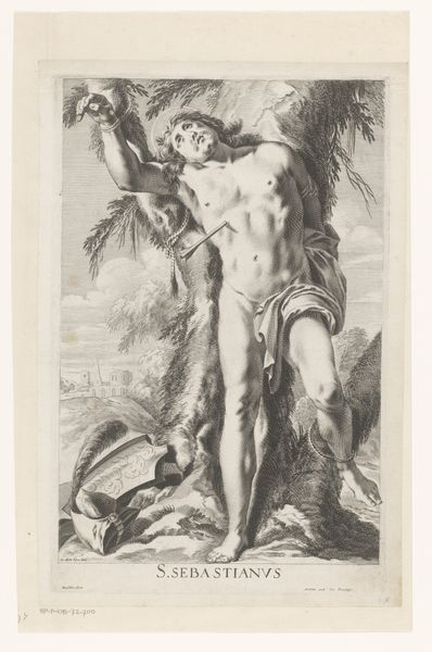 Curator: Here, in this gallery at the SMK, we have "St Sebastian," an evocative drawing made with charcoal, dating somewhere between 1518 and 1594 by an anonymous hand. Editor: My initial thought? Intense. He’s just radiating a stoic, ethereal sort of suffering, but there's also, I don't know, a vulnerable beauty in that pain. It’s weirdly captivating. Curator: Absolutely. Think about the symbolism: Saint Sebastian was a Roman soldier martyred for his Christian faith. This image captures not only physical suffering, emphasized by his semi-nude presentation, but also represents resistance and the strength of belief against oppression. Editor: And his idealized, almost classical form seems to both highlight his agony and distance him from it, which I find really compelling in a discomforting kind of way. It brings to the fore this persistent art historical obsession with male suffering. Who is allowed to suffer in art, and how? Why this enduring aestheticization of pain, right? Curator: Right, right. But that aestheticization was strategically powerful in its time. Remember that depictions of martyrdom like this were often intended to inspire viewers. The arrows don’t just signify physical torment. The marks could also signify that spiritual conviction had the power to endure. And this isn't some brutal execution scene. The muted color scheme, the way light hits his figure -- there is almost a kind of acceptance etched across the image. Editor: It is impossible to see how people's sexual identities, and historical interpretations, weren't affected, if not explicitly engaged with, the visuality here, considering, of course, interpretations vary across culture and through history. Like the arrow, in particular, had such power and such meaning. Curator: A bullseye for historical impact then, I suppose. Editor: I would agree with that assessment, actually! Curator: It gives me pause about what resonates across eras and why—a conversation for another time. Editor: Agreed, a compelling piece. I keep seeing layers revealed each time I examine his pose. It makes you wonder who this faceless person might be!