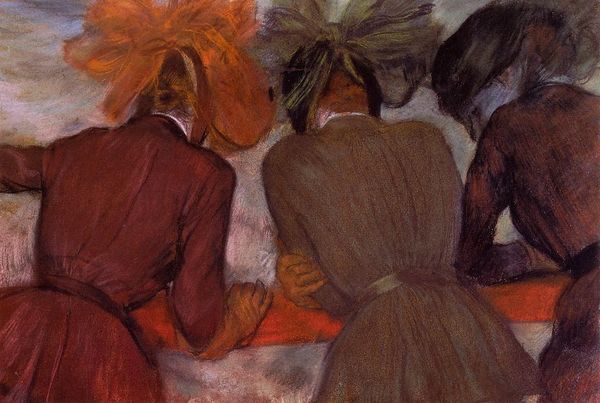 Edgar Degas captured these Three Women at the Races with pastel on paper. The hat, a critical element of a woman's attire, is prominently featured, signifying status and respectability in 19th-century social gatherings. The hat, though a mundane object, has deep roots in the collective psyche. In earlier times, head coverings symbolized rank, religious devotion, or even protection against unseen forces. Think of the Phrygian cap, a symbol of freedom in antiquity, or the veiled figures in Renaissance paintings, suggesting mystery and hidden knowledge. Here, the hat subtly veils the women, creating an air of detachment. It speaks to the complex interplay between visibility and concealment, reflecting the social expectations and psychological realities women faced. It is a visual echo, a motif that reminds us that symbols continuously resurface, evolving and accumulating new layers of meaning across time.