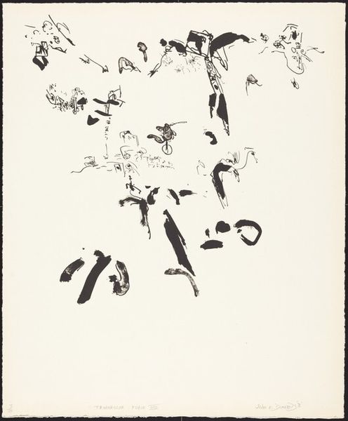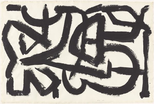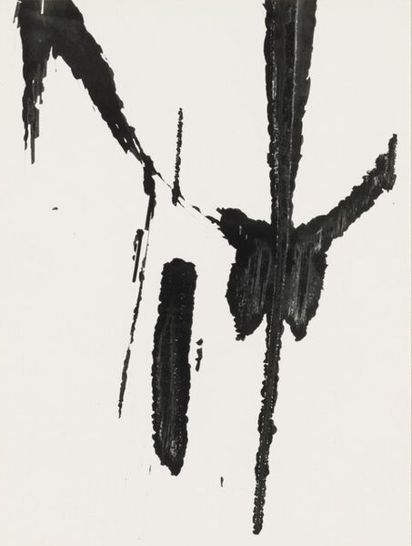 Robert Motherwell made this untitled work on paper with ink, and a whole lotta spontaneity. The black and white is so simple, but it's full of energy. It's a process of letting go and seeing what happens. Check out the way the ink pools and spatters; it's like he’s capturing a moment of pure, unfiltered expression. The thick, horizontal line grounds the piece, but everything above is just wild freedom. You can almost feel the speed of his hand as he flung the ink across the page. It reminds me a bit of Franz Kline's work, but with a lighter touch, or maybe Brice Marden. Both artists explored abstraction, but Motherwell’s feels more like a dance, more intuitive. Ultimately, it's not about what it represents but how it makes you feel. And for me, it's a feeling of exhilaration, like anything is possible.