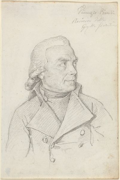 Curator: Here we have a pencil drawing by Elizabeth Rigby, dating from around 1833, of a seated gentleman named Mr. Browne. Editor: The soft gradations of graphite create a rather pensive mood, wouldn't you say? The artist really captures a feeling of quiet contemplation. Curator: Rigby, later Lady Eastlake, was a prominent figure in the Victorian art world, known for her writing and social commentary as much as her art. Editor: Yes, and notice how she uses hatching to define form and shadow, lending weight and volume to his figure within a very economical composition. Curator: Considering Rigby's position, portraits like these gave her access to influential circles, establishing her reputation and solidifying her social standing. Editor: The precision is remarkable; observe how she details his jacket, contrasting against the chair's more loosely rendered contours. Curator: It gives us insight into both Rigby's artistic skill and the societal dynamics of the time. Editor: A quiet, yet powerful piece offering much food for thought on her technique.