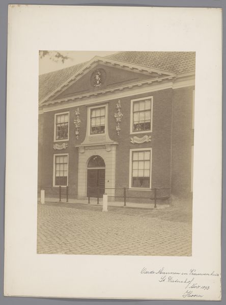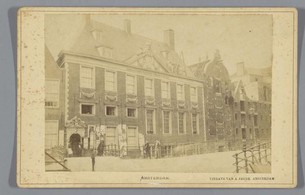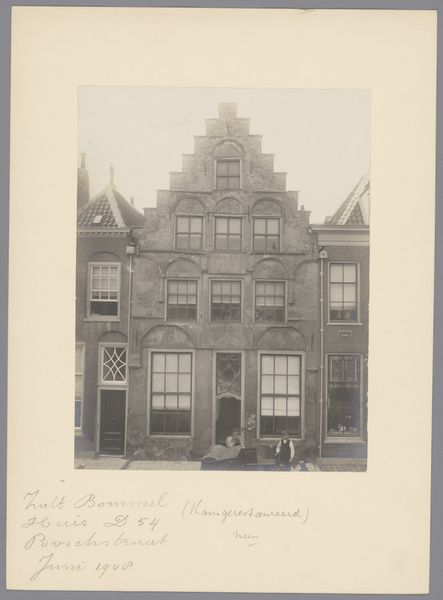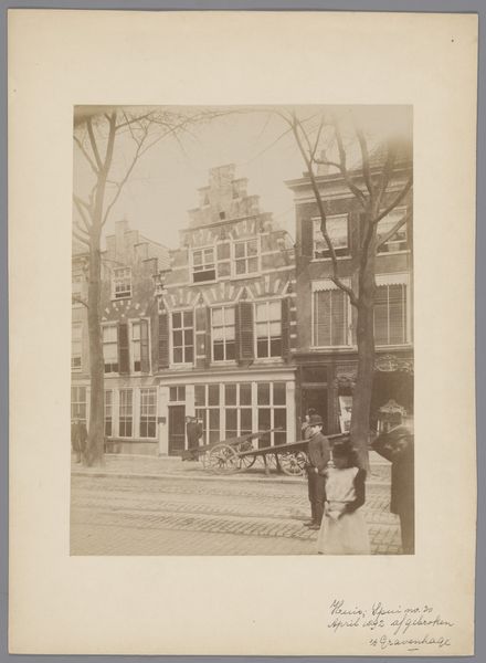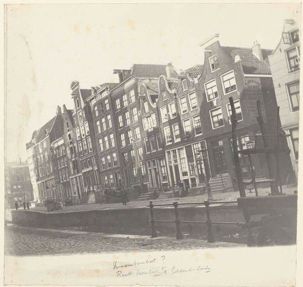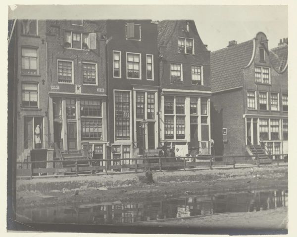 Editor: This gelatin silver print, “Gezicht op huizen aan de Rechtboomsloot in Amsterdam,” was captured by George Hendrik Breitner sometime between 1886 and 1910. I find the composition so striking, the way the facades are presented head-on. What stands out to you in terms of its formal qualities? Curator: Indeed, the frontal composition is key. Notice how Breitner manipulates the flatness inherent in the photographic medium. The varying heights of the houses create a rhythmic structure, yet the subdued tones and consistent lighting flatten the scene, emphasizing surface over depth. Semiotically, what does this calculated shallowness evoke? Editor: I suppose it distances the viewer, makes them an observer rather than an inhabitant of the scene? What about the variations in the architectural details? Curator: Precisely. Each house front presents a unique configuration of windows, ornamentation, and rooflines, offering a visual language. This articulation resists pure uniformity. The photograph documents reality, but also organizes it into a constructed image, mediated through choices about viewpoint, focus, and tonality. Consider also the gelatin silver print, which grants specific qualities of sharpness, grayscale, and fine detail. How does Breitner harness it? Editor: You're right, there's a striking clarity despite the subdued tones. It allows you to study the minute architectural details. I had been so focused on the subject that I hadn’t fully appreciated how the medium itself shapes our perception. Curator: An artist's true genius lies in wielding formal constraints to construct layered significance, isn’t it? We should never disregard the intentional manipulation of form over simple representation. Editor: Thanks, that definitely gives me a new perspective on appreciating Breitner’s work.