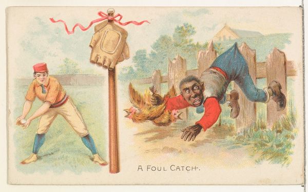 This curious chromolithograph, made by Duke Sons & Co., shows a baseball player, a startled horse, and a gaggle of chickens. The image teems with symbolic potential, particularly the figure of the horse. Consider the rearing horse, an ancient symbol of virility and untamed power, here thrown into disarray. We see echoes of equestrian statues of triumphant emperors, now humorously subverted by the rider's loss of control. The chickens, symbols of domesticity and sometimes foolishness, scatter in comical panic. This baseball card is a potent reminder of the enduring power of symbols to convey complex emotions and ideas, even in the most unexpected of contexts. It invites us to contemplate how collective memory and cultural narratives shape our perceptions, reminding us that even a simple image can carry profound psychological weight.
