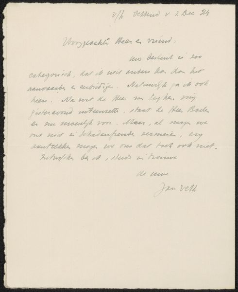 This letter was written by Nicolaas Beets in Utrecht, dated December 1, 1884. It is made of paper, carefully chosen for its ability to absorb ink and carry the delicate impressions of the typeface. Notice how the words are meticulously arranged, each character a product of the printing press, a symbol of industrialized communication that was transforming society at the time. The letter embodies the transition from hand-written correspondence to mass-produced text, raising questions about individuality and authenticity. The act of printing itself represents a form of labor, where the skills of the typesetter and the operation of the machinery play a crucial role in disseminating Beets's message. This connects the letter to broader issues of labor, politics, and consumption that define the modern era. By understanding its materials, production, and social context, we can recognize the letter as an artifact of its time, challenging traditional distinctions between fine art and craft and inviting us to reflect on the nature of human expression in the age of mechanical reproduction.