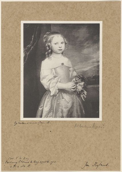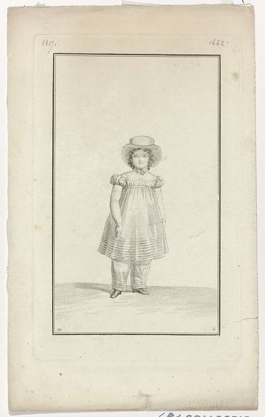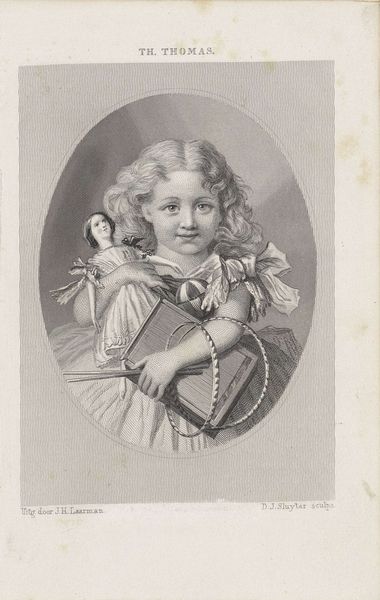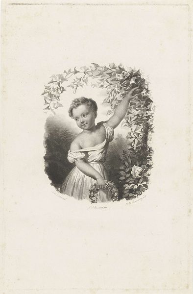 Willem Frederik Wehmeyer made this print called ‘Meisje met een bloem’ or ‘Girl with a flower’ using etching techniques sometime in the mid-19th century. Looking at this image, it's important to remember the context of Dutch art institutions and the market for imagery at the time. Etchings like this one served a vital function in circulating images widely and were often collected in albums or used for educational purposes. Wehmeyer, who was associated with the Felix Meritis Society in Amsterdam, produced work that often reflected middle-class values. This print aligns with the period's focus on childhood innocence and domestic virtue. The girl's pose and the presentation of the flower invite us to consider ideas about beauty, youth, and perhaps even the fleeting nature of life. As historians, we use institutional records, market data, and cultural studies to investigate images like this. The meaning of art is never fixed, but always contingent on its social and institutional context.