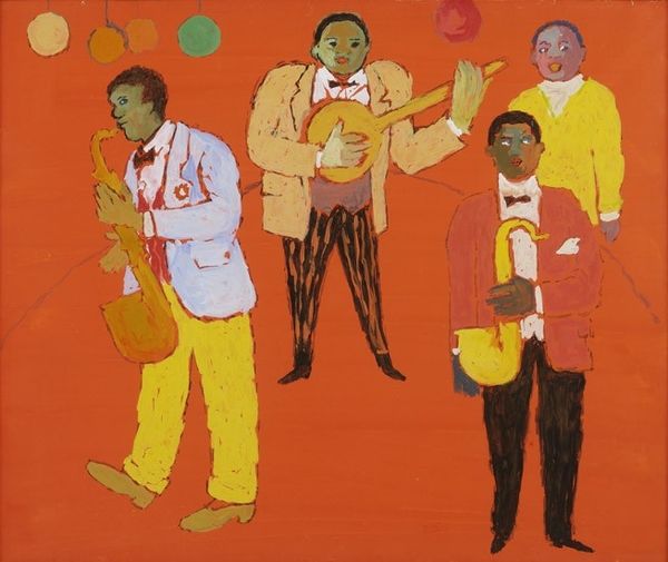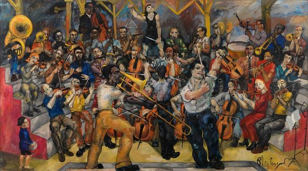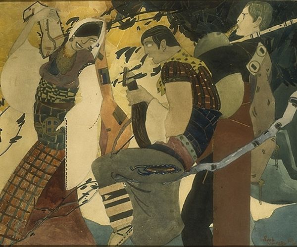 Candido Portinari made this painting called "Chorinho," and he used oil paint to do it. It’s got this cool, muted palette, almost monochrome, which gives it a smoky, jazzy vibe, like a late-night jam session. You can almost hear the music coming right out of the canvas. I find the way the paint is applied really interesting. Portinari uses these short, choppy strokes that kind of build up the figures and their instruments. It’s not about smooth blending but more about creating a textured surface that feels both raw and intentional. Look at the musician playing the trumpet, the way Portinari defines the shadow around his lips with these quick, dark marks, they’re so expressive! It’s like the paint itself is dancing. I’m reminded a bit of Picasso's blue period, where the color palette serves as a mood, but Portinari really makes it his own with his mark-making style. It's this ongoing conversation among artists. It really embraces the idea that there’s no one right answer, just different ways of seeing and feeling.