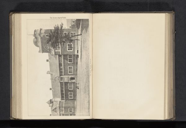 Curator: Here we see a page opened from a sketchbook presenting "Gezicht op een villa te Harrow", or "View of a villa in Harrow," dating from before 1889, rendered in ink on paper. Editor: Immediately, I'm struck by its somber mood. The dark ink against the aged paper conjures a feeling of a time long past. It's architectural rendering, but feels melancholic. Curator: Yes, the sepia tones and somewhat stark lines speak of an older world. Consider the symbolism of a villa; historically a signifier of power, wealth, and retreat. Yet here, it appears almost isolated. Does it represent something specific about the owner, perhaps even a loss of control? Editor: Villas often signify an escape from civic duties or oversight. Who did it serve and what are the implications of memorializing an escape like this through art? The isolation you point out is a poignant one, because it isn't just a house but something the represented more widely—the role of wealthy families in the pre-industrial countryside. Curator: Interesting observation. Look closely at the drawing technique though. The precision is admirable but impersonal—almost clinical. Note the delicate shading creating a textured sense of the building, while also reminding us of inevitable decay through entropy and mortality. Editor: Exactly, and the fact that it’s a drawing from a sketchbook places it within a specific power dynamic. The act of sketching makes a claim on the subject; what meaning do we attribute to this particular building by immortalizing in this medium? I would go so far as to say the artist reveals their bias from the vantage of this position. Curator: It also reveals what interested the artist personally—they took care to make a note about this scene. Sketchbooks tend to invite contemplation, and also mark where the hand may choose to dwell a little bit longer. And although technically skilled, the medium itself retains a degree of informality which can be interesting to dwell upon in our interpretations. Editor: Perhaps that's why I find it so haunting, a juxtaposition of control and artistic intimacy. The drawing invites more than a technical appreciation, because there's a dialogue between architecture, individual experience, and the societal narratives that encompass this piece. Curator: Ultimately, this image prompts questions about social hierarchy and wealth. Editor: Absolutely, it invites to examine its deeper meanings that can shed light on societal inequalities and perhaps challenge the romanticism around a certain image of architectural space and representation.