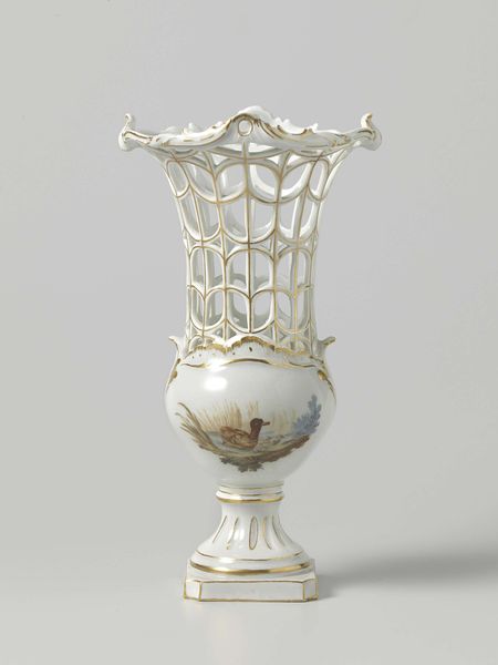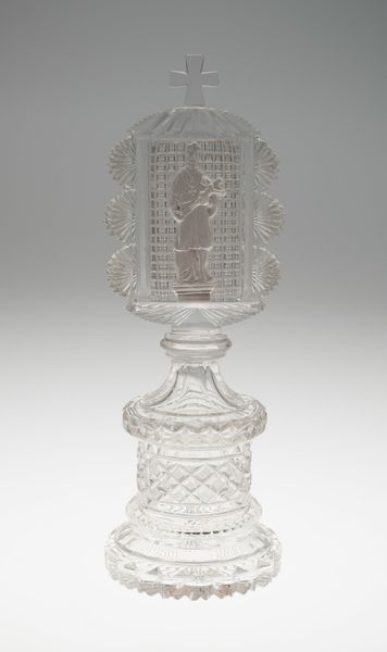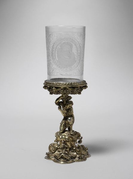 Curator: Here we have a communion set created in 1736 by Dirk Wor. Predominantly crafted from silver, it's an exceptional example of Baroque decorative art. What strikes you first about this piece? Editor: The sheer intricacy is astounding. Every surface seems to be meticulously embellished. The light catches all those curves and flourishes; it creates a lively visual rhythm. There’s definitely a sense of opulence. Curator: That ornamentation speaks to its original context, doesn't it? This wasn’t just a vessel, but a statement of wealth and piety. Silver, as a material, carried significant value, reflecting the patron's status. It signals more than just devotional utility. Consider the labor involved, the artisan’s skill, and the resources necessary to realize such a piece in the 18th century. Editor: Absolutely, and the craftsmanship elevates the material. Look at how Wor shapes the silver, transforming it from a simple metal into an elaborate expression of power, faith, and artistry. The form itself is interesting – that widening curve is typical of Baroque design. It invites the eye upward to a culminating moment. The use of space is balanced by areas with elaborate surface embellishment. Curator: The societal function of objects like these fascinates me. It would have played a crucial role in community rituals. Religious occasions often were heavily impacted by socio-economics. The very act of crafting this communion set represented a financial and cultural commitment within the community. Editor: And we see that commitment expressed through this sophisticated interplay of light, shadow, form, and detailed sculptural elements, all coalescing into a unified visual whole. It’s far more than its simple utility; it embodies aspiration. Curator: Exactly. This piece reflects how intertwined art, craft, labor, and belief were in the 18th century. A singular artifact brimming with so much contextual data. Editor: A harmonious balance, then, between devotion and visual expression, forever etched in silver.
