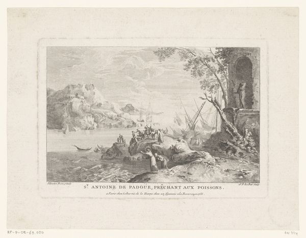 Jacques Philippe Le Bas etched this depiction of Saint Anthony of Padua preaching to the birds in the 18th century. Here, we witness the saint extending his hand, a gesture of blessing and communication, towards a gathering of attentive birds. This iconography is particularly fascinating. The act of preaching transcends mere religious instruction; it embodies a deeper connection between humanity and the natural world. Consider similar motifs throughout history: Orpheus charming animals with his lyre, or even ancient Egyptian deities associated with specific creatures. There's a psychological dimension to this scene, as the desire to communicate with nature reveals our yearning to understand and connect with something beyond ourselves, hinting at a universal desire for harmony and understanding with the natural world. The birds themselves embody freedom, lightness, and spiritual ascension. It is through symbols like these that we can better understand the migration of images and ideas through time, always evolving, yet eternally resonant.