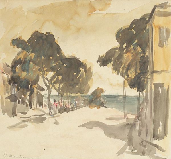 Mark Rothko made this harbor scene with sail boats using thin washes of oil paint on paper. The paper itself has a visible texture, subtly influencing how we read the scene. Notice how the watery consistency and application of the paint imbues the depicted harbor with a sense of fluidity. Look at how the strokes are loose and gestural, applied in a manner that blurs the distinction between objects and their surroundings. Trees, buildings, and boats are all evoked with the same delicate touches. Rothko clearly engaged with the traditions of landscape painting, but he reduces the scene to its essential colors and forms, hinting at a transition toward his later, more abstract style. By engaging the language of material, we can see how Rothko was testing the boundaries between representation and abstraction. He understood the expressive potential of his chosen media, and the effect this has on his audience. The painting's value lies not just in its composition, but in the artist’s unique manipulation of materials.