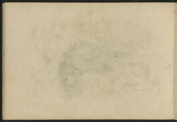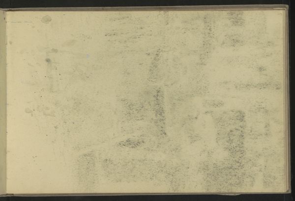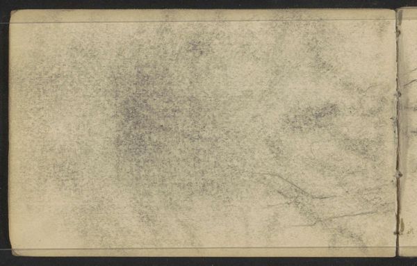 This work, "Abklatsch van de krijttekening op pagina 46," was made by Willem Witsen. At first glance, we see a study in tonal subtlety—various gradations of gray wash across the surface of the paper. The composition is seemingly simple, yet the horizontal lines of the wash create a structured space, almost like bands of thought. The word ‘Abklatsch’ means ‘rubbing’, a technique that captures texture and form through transfer. We might consider how this process destabilizes the conventional artistic hierarchy, suggesting that reproduction can be as significant as the original. The lack of a definitive image challenges our expectation of representation. Ultimately, Witsen presents us with an exploration of form and process. It’s not just an image, but an imprint—an echo of the artist's touch, inviting endless interpretation.