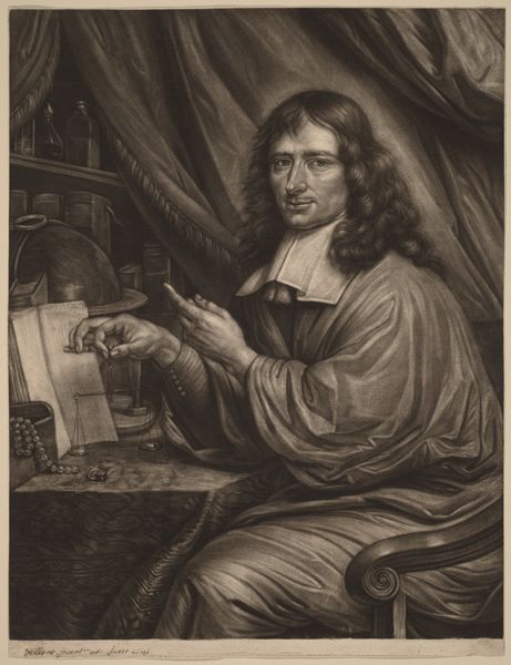 Karel Dujardin rendered this etching of Jan de Vos, capturing the sitter in the midst of thought, a scroll clutched in his hand. This scroll, or roll of paper, speaks volumes. Consider how the motif of the scroll stretches back through antiquity, a symbol of knowledge, authority, and the written word. From the Torah scrolls of Judaism to the philosophical treatises of ancient Greece, the scroll represents a vessel of enduring wisdom. It’s fascinating to observe how this symbol persists, evolving through the codex and eventually into the printed book. Each iteration carries echoes of its predecessors, a testament to humanity's enduring quest for understanding. The act of holding a scroll speaks to a deep, perhaps subconscious, desire to connect with past wisdom. The scroll motif is not merely about the information it contains, but about the power it represents. The simple act of holding it, as Jan de Vos does here, engages us on a profound level, reminding us of the cyclical nature of knowledge and its eternal return throughout history.