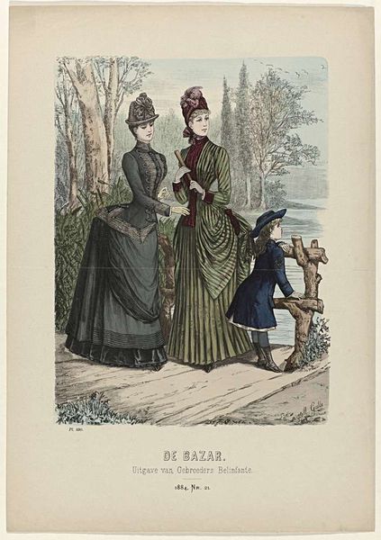 P. Deferneville created this fashion plate for the February 1886 issue of *La Femme et la Famille*, a French magazine. Through carefully chosen attire, it presented an idealized image of bourgeois womanhood and domesticity. Published during the Belle Époque, the print reflects the era's emphasis on etiquette and consumer culture. These clothes were for women who did not work and is an image of the ideal woman as primarily a wife and mother. Each costume is designed to highlight the body while still conforming to the conventions of modesty and class. The woman on the left with the most elaborate costume signals that femininity was not just natural, but a performance. The clothing of the children reflects the different stages of childhood and the careful cultivation of gender roles from a young age. Consider that access to this magazine and the ability to replicate these fashions reinforced existing social hierarchies. But do take a moment to imagine the rustle of the fabrics, the chill of the winter air, and the delicate scent of the perfumes advertised on the page. While the image is about aspiration, there is still room to consider its emotional appeal.
